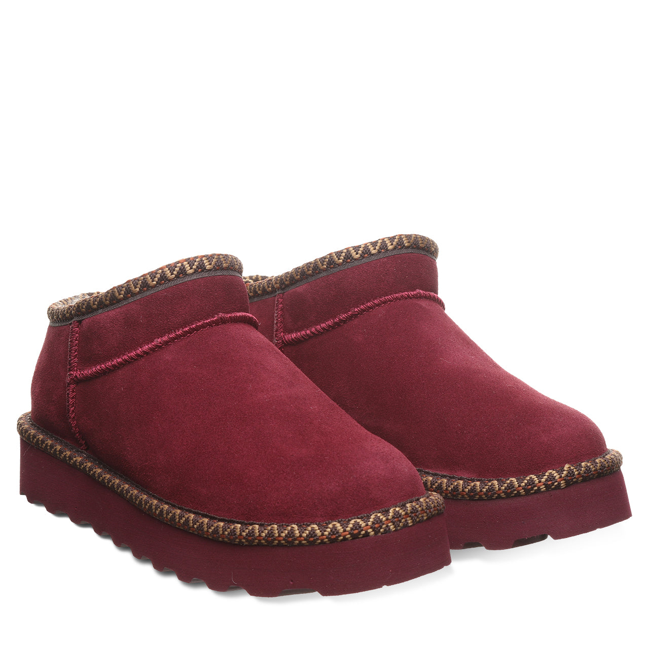 These boots are lightweight yet also sturdy. They have just a bit of height around the ankle to keep them from slipping off when you don’t want them to but are still easy to slip off when you do! When you’re spending time around the house, snuggle into these cozy suede and wool blend lined boots.