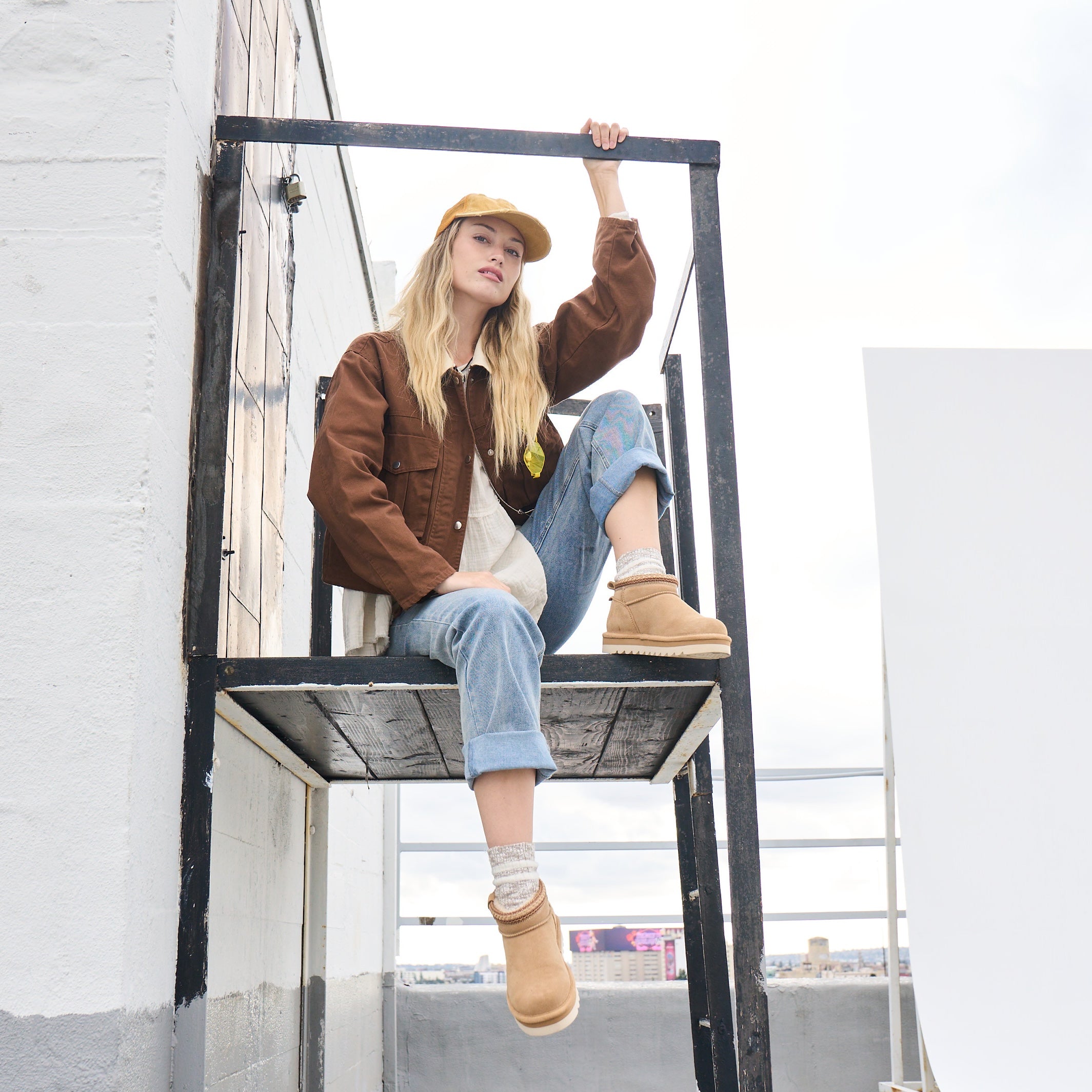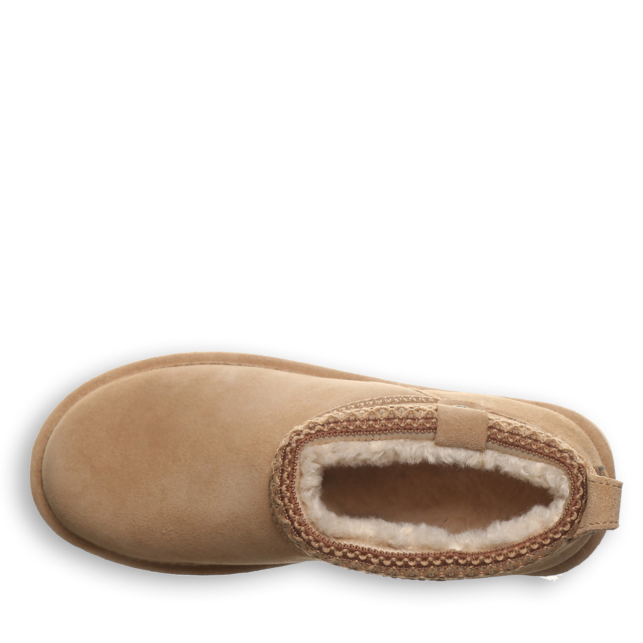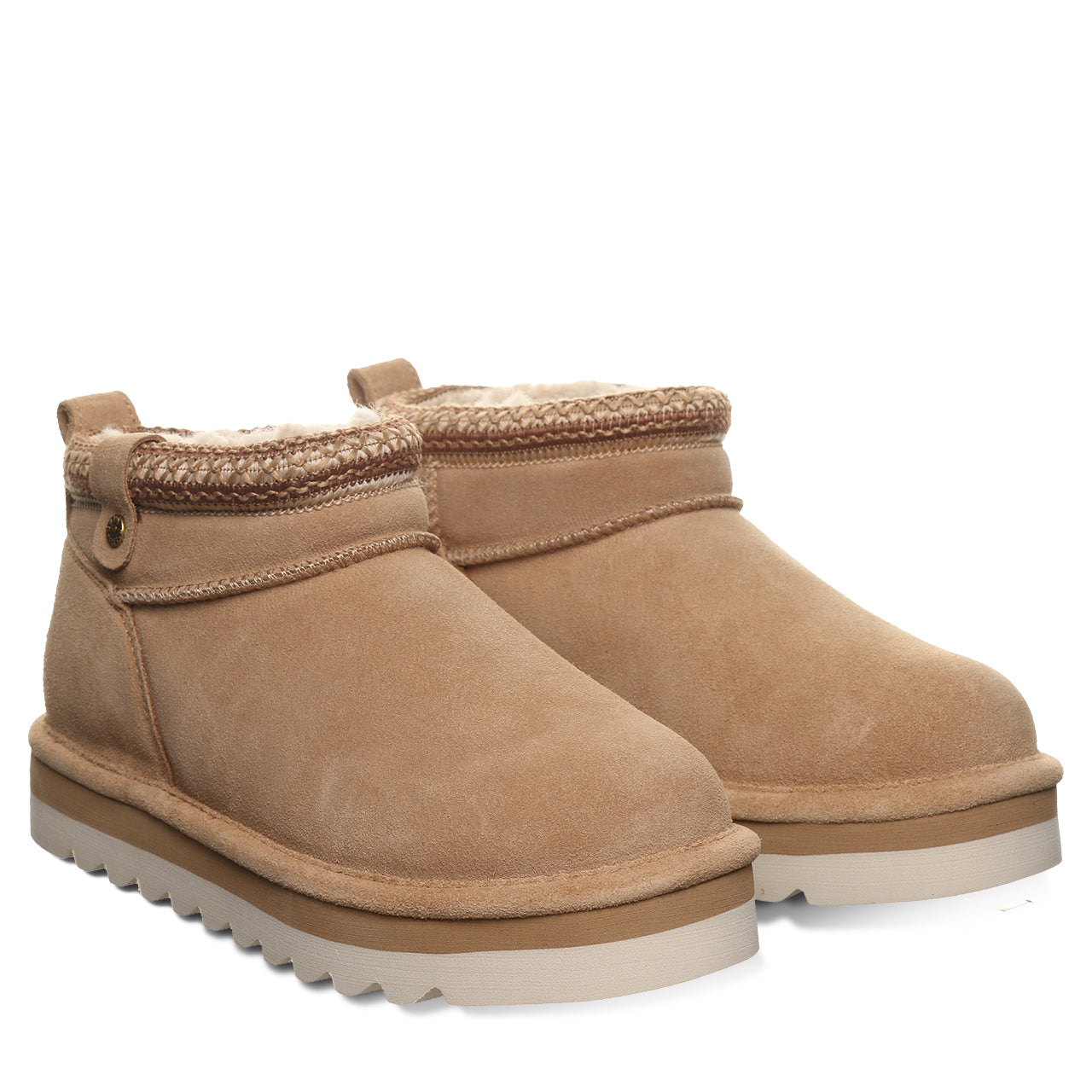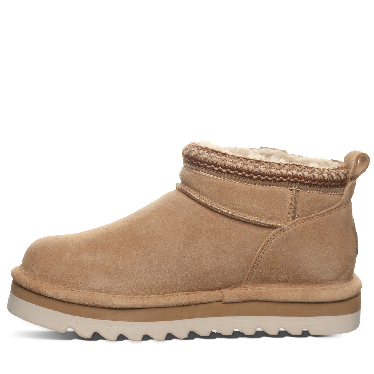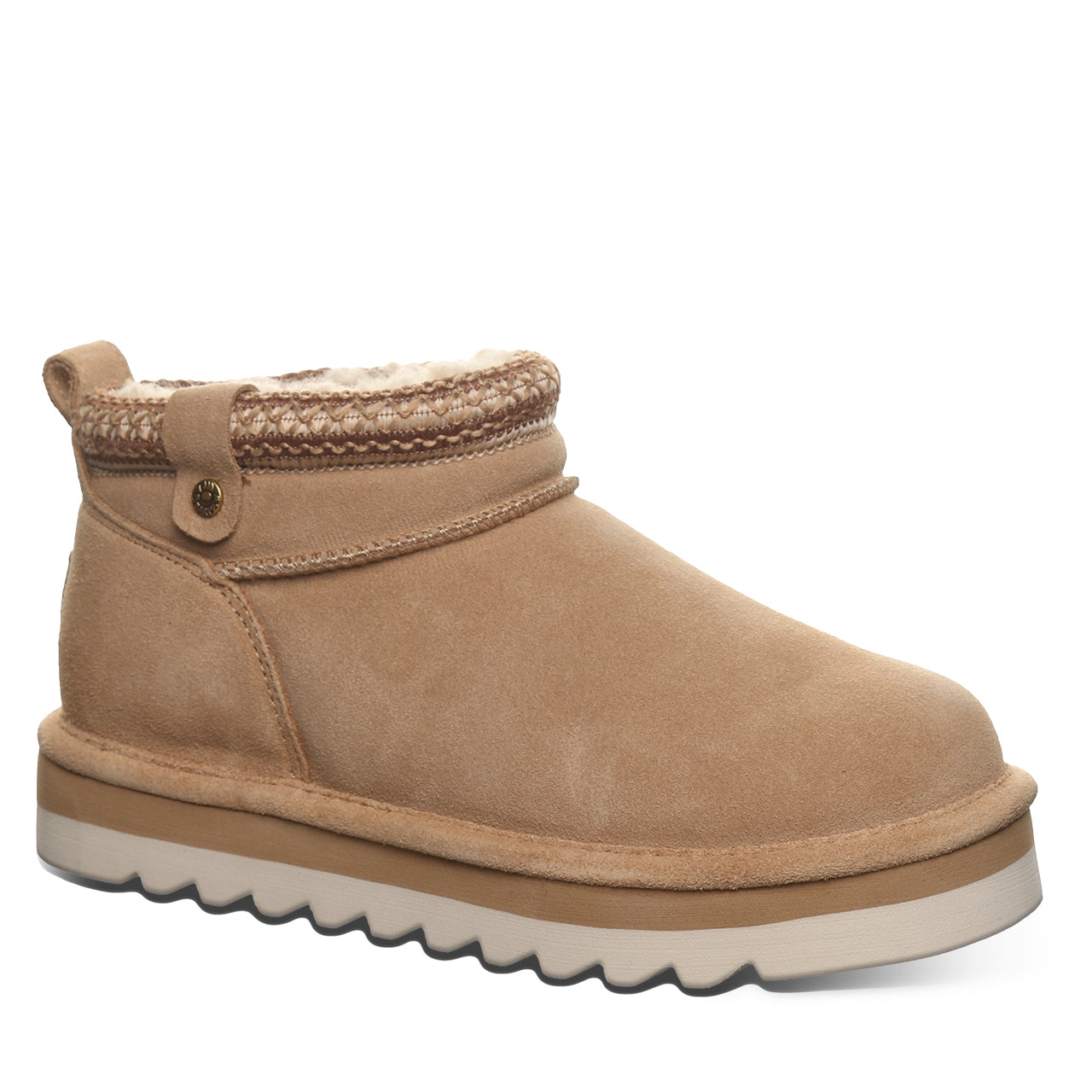 Drawing inspiration from our classic shorty boot, the Langly brings a fresh, modern twist to a timeless favorite. Made with genuine suede and a soft wool-blend lining, these boots will keep you warm and comfortable all day long. The updated silhouette and textured trim add a stylish touch that’s easy to wear with anything—from jeans to joggers. Effortlessly cool and built for your everyday slay, the Langly is a nod to 25 years of Bearpaw style that never goes out of fashion.
