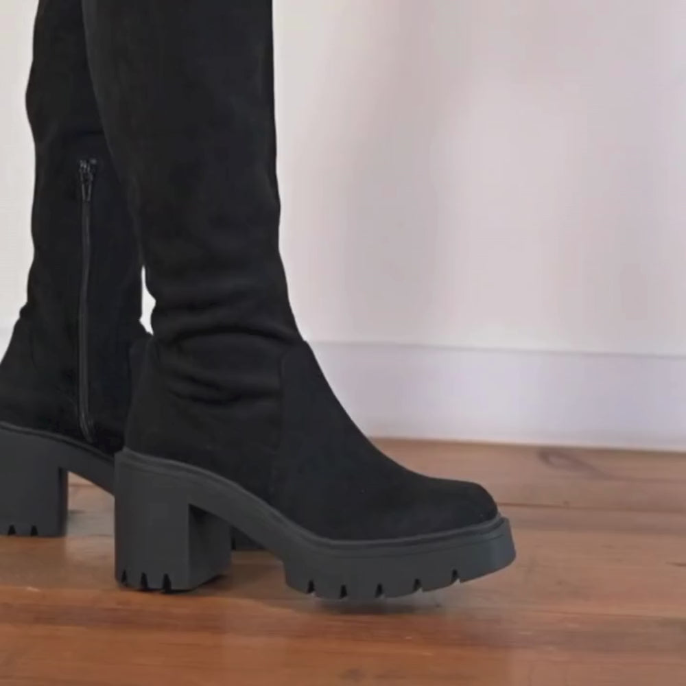 Effortlessly blend style and confidence this fall with a new offering from BEARPAW. Crafted from soft faux suede, this sleek knee-high design features a side zipper for easy wear and a chunky lug heel for classic flair. Monroe is the perfect boot to take you on a chic night out.