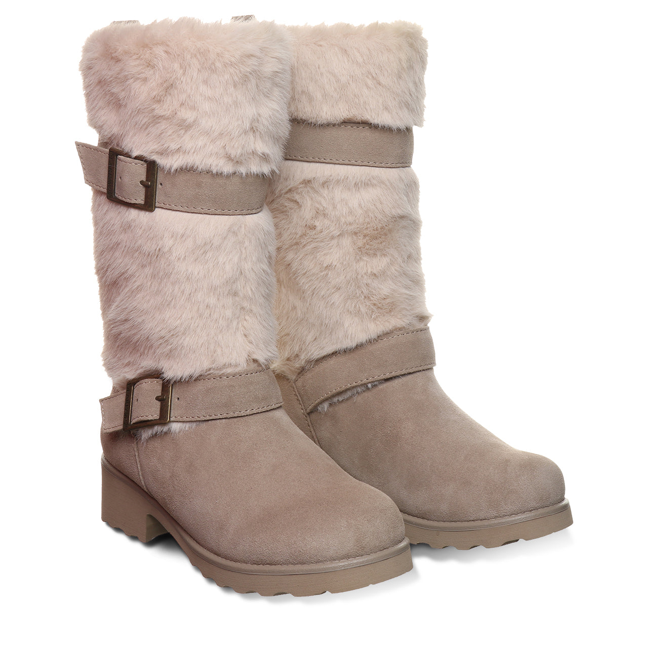 Faux fur? For sure. Octavia is wrapped in stunningly chic faux fur trim and a cute buckle detailing, making it the perfect winter boot for all your winter adventures. Our classic durable suede and slight heel bring a chicness to this boot making it a wearable addition that elevates any outfit.