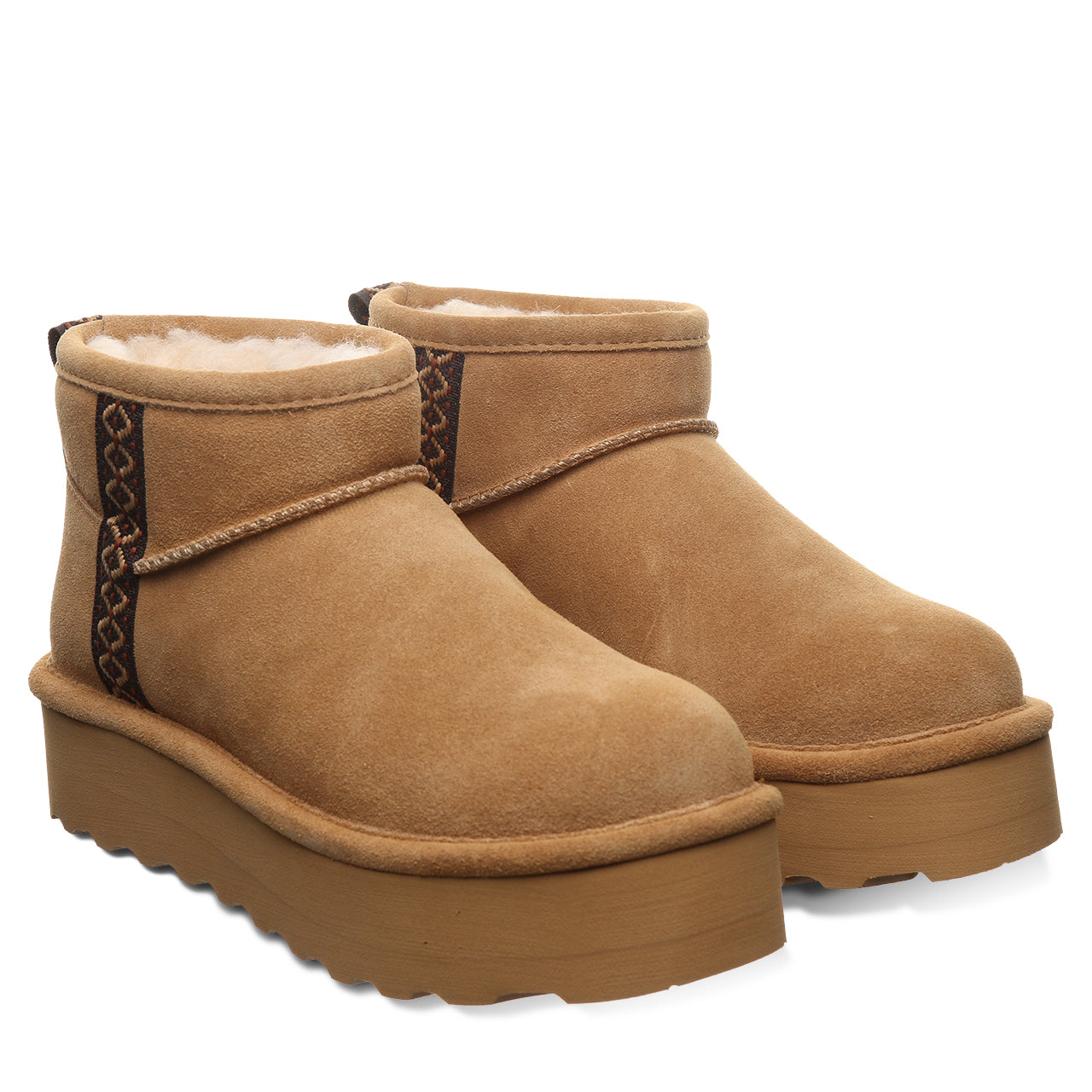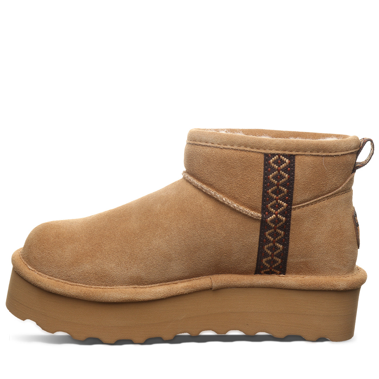 Retro October brings a touch of '90s energy to a cozy classic. Pairing soft suede with a bold patterned accent and a walkable platform-these cozy booties serve just the right amount of personality for your new everyday fave. Wool blend lining and a cushy, removable footbed keep things warm and wearable, while BearCoat tech protects your vibe from coffee spills, sidewalk splashes, and everything in between.